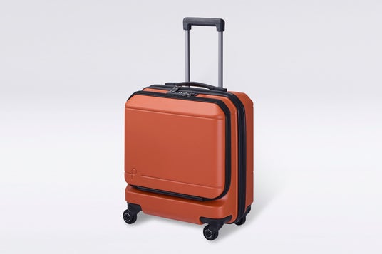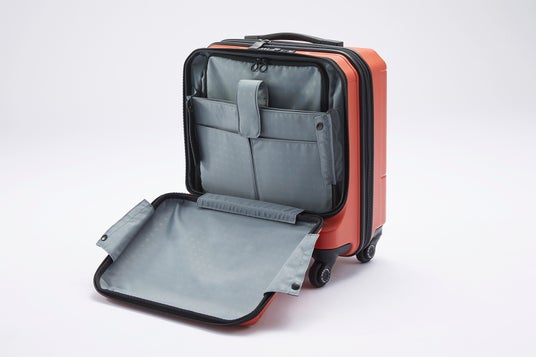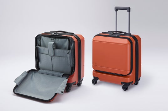 書類やノートPCの収納に適した横型スーツケースです。高さを抑えた設計なので、新幹線の座席足下にも収まりやすく、上部にビジネスバッグを安定してセットアップできます。