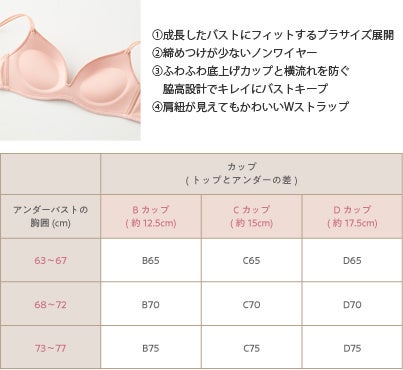 ●サイズ:B65、B70、B75、C65、C70、C75、D65、D70、D75