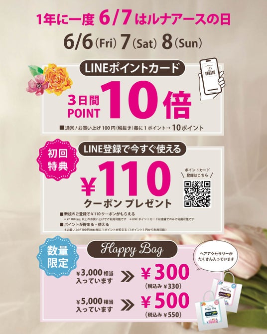 ビーズやアクセサリーパーツなどの企画・製造・販売をする株式会社エンドレス(本社:東京都台東区、代表取締役:蕭(しょう)易風(えきふう)の運営するプチプラアクセサリーショップ「LUNA EARTH(ルナアース)」と姉妹ブランド「Mira LABO」がこの度、年に一度の大感謝イベントを開催。毎年人気のイベントを3日間開催決定。