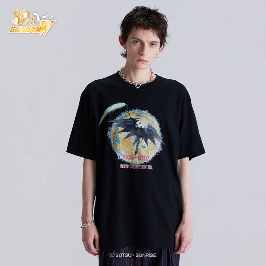 今回glambがデザインのソースとして選んだのは『新機動戦記ガンダムW』。同作が今年で放映30周年を迎えたことを記念して、シリーズ完結編となるOVA作品『新機動戦記ガンダムW Endless Waltz』に登場するキャラクターを元にデザインが行われました。glambは同作に登場する5人の主人公が搭乗する5体のガンダムをモチーフとして選び出し、ブランドが得意とするファインアート的なグラフィックワークを用いて表現。それらをシャツ、Tシャツ、ロングスリーブTシャツ、そしてフーディに落とし込んでいくことでストリートウェアとして形にしていきました。アイテムは全5型、ユニセックスの3サイズ展開となります。