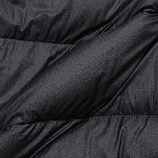 ~ 表地からパーツに至るまで徹底的な軽量化設計 ~圧倒的な軽さを追求した「フロータブルシリーズ」から発売した本製品は、表地に軽量素材を採用し、通常のダウンウェアに用いられるダウンパックを排した構造で縫製することで、素材・構造の両面から軽量化を実現しました。ダウンパックは省いているものの、縫製にはダウンの吹き出しを防ぐ特殊ステッチを施しているため、ダウン吹き出しの懸念を軽減しています。さらにファスナーなどの副資材の見直しによって細部まで軽量化を追求することで、ダウンならではの保温性と大幅な軽量化の両立を実現しました。