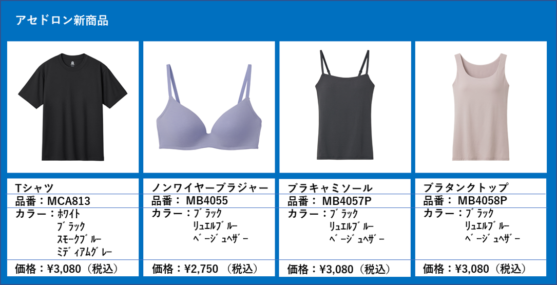 グンゼ株式会社(本社:大阪市北区、社長:佐口 敏康、以下グンゼ)は、2024年の発売以来、前年比150%伸長の「アセドロン」から、更なる汗の未充足ニーズにアプローチする新商品「ブラジャー」と「Tシャツ」を発売いたします。「アセドロン」は、2年連続、数々のヒット賞を受賞し、2026年2月には累計出荷枚数300万枚を突破いたしました。この度の新商品も、年々厳しく、長引く猛暑・酷暑でうんざりする汗悩みに、独自の機能性で解決に挑みます。
