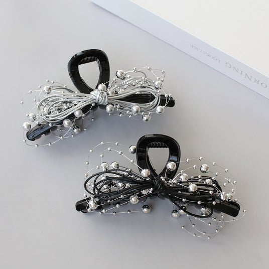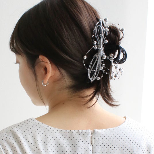 商品名:シルバーパール×コードリボンバンスクリップ