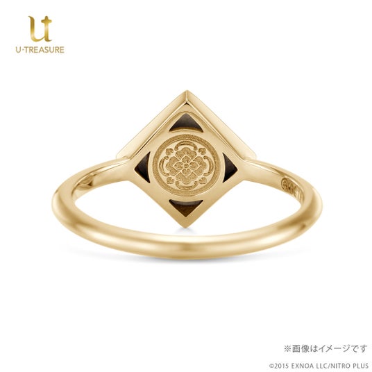 日本独自の伝統技法である「蒔絵(まきえ)」をデザインに取り入れた、漆とさり気なくきらめく蒔絵が和の趣を感じさせるデザインのリング(指輪)。指輪の内側には、刀剣男士紋を刻むことができます。