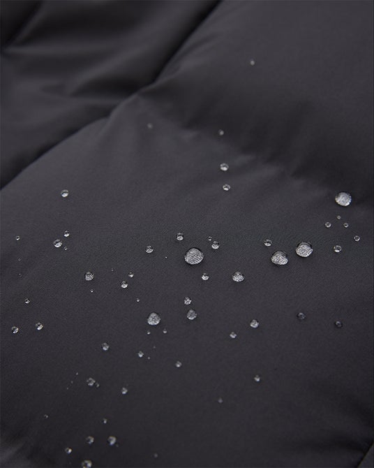 熱圧着加工縫製部分から水が染み込まないようミシンの縫い目のない「熱圧着」という無縫製技術によりダウンを仕切っています。これにより高い防水性を確保するだけでなく、ダウン抜けを防ぐことができます。