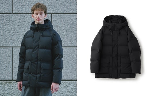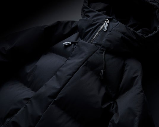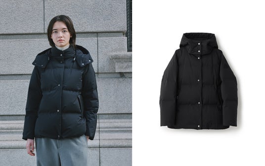 青森ファクトリーのクラフツマンシップが息づくショート丈。リサイクルナイロンを高密度に織り上げた三層構造素材は、透湿防水性に優れ、特殊染色により深みのある漆黒カラーを実現しました。青森で育まれた上質なダウンを惜しみなく充填し、縫い目を感じさせないシームレス仕立てで、雨風をしっかり防御。比翼仕立てのフロントはすっきりとミニマルに、高級感のあるエクセラファスナーや立体的なフードも装備。丁寧な縫製に裏打ちされたクオリティの高さで、都会に映える本格派ダウンが完成しました。