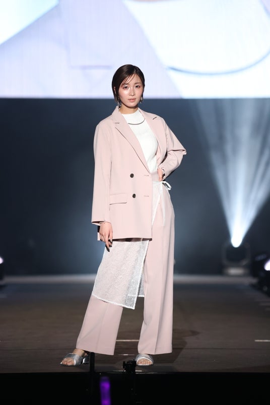 ファッショントレンドが日々変化する中で、「ものを捨てない」「ものを大切にする」こともSDGs達成に向けた重要なテーマとなっている中、今季のトレンドアイテムをはじめ、オールシーズン活用できるアイテムも取り入れたコーディネートで、買いすぎないスマートファッションを提案する「SEASONLESS FASHION STAGE」には、ブラックを基調としたクールなマスキュリンスタイルに、シルエット・カッティング・マテリアルで女性らしさをプラスした唯一無二のモードスタイル「FEMININE MODE」なアイテムを展開するMURUA(ムルーア)が登場!数々の話題作に出演する人気女優岡崎紗絵や、抜群のスタイルが“女神”と度々話題を呼んでいる王林らが登場!2025年春夏のトレンドでもあるシフォンやオーガンジー素材を取り入れた、春先取りのコーディネートを披露しました。