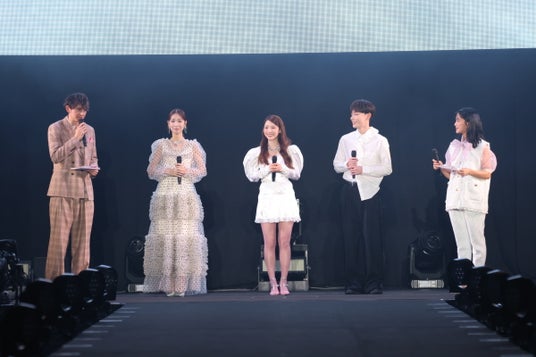 国内でも数多くのブランドでサステナブルなアイテムが展開され、それが当たり前になりつつある今、TGCが注目するサステナブルブランドをご紹介するコンセプトステージ「TGC サステナ STAGE」には、TGC初登場となるブランドで、デッドストックもしくは生産過程で余ってしまった高級ヤーンを幾つもの工場から買取り、中国の伝統的な漢服にインスパイアされたプレイフルなデザインのニットを製作しているYanYan(ヤンヤン)が登場!とうあ、せいら、そして、サプライズ登場したWILD BLUEの宮武颯、山下幸輝ら、超人気モデル、ゲストたちが、ピンクやベージュの鮮やかなカラーが印象的なコーディネートに身を包み総登場し、『SDGs推進 TGC しずおか 2025』のファッションショーを締め括りました。