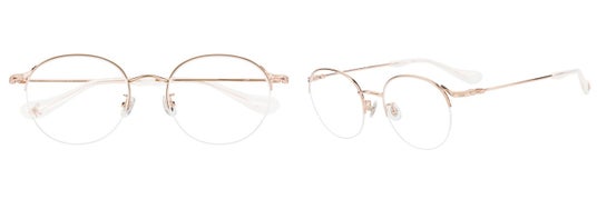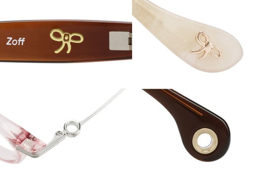 上:バレエコアを代表する「リボン」を、つるの内側や先端にデザインしました。(ZA251001_43A1 ZN251004_11A1)下:丁番付近やつるの先端には、指輪をモチーフにしたあしらいを。(ZN251003_20A1 ZA252001_43E1)