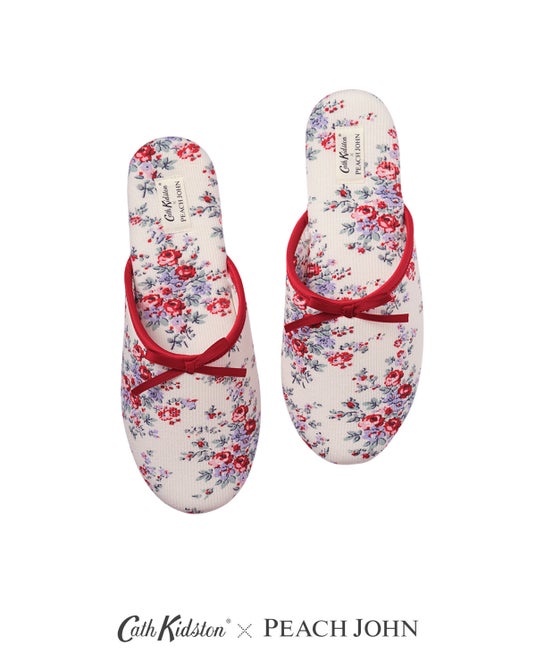 雑貨2型は、ルームウェアに合わせて楽しみたいルームシューズと、Cath Kidstonのロゴとブーケの刺しゅうをあしらったオーガンジー生地のバッグをラインナップ。