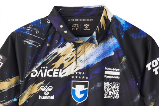 オーセンティックユニフォームは、素材やマーク加工、シルエットなどすべて選手が試合で着用するものと同じ仕様で、HOMEユニフォームと同じ襟付き仕様。襟下背あて部にはクラブのテーマ「BE THE HEAT , BE THE HEART」を、また、襟を立てると襟裏にGAMBA OSAKAの文字がゴールドで見える設計にしています。