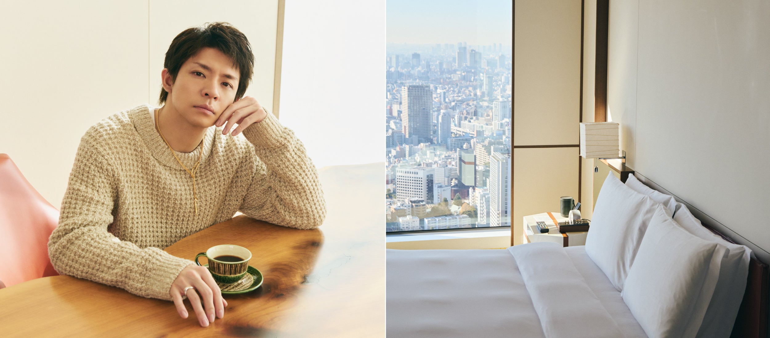 本ヴィジュアルは、現代の探検家にインスピレーションを与えるようにデザインされている高品質でクラフトマンシップに基づいた汎用性の高いSPRINGコレクションを通して、『特別な空間で、心地よい洗練をまとう。』をテーマに、岸優太さんが都会のホテルで過ごすモダンなウィークエンドスタイルを体現しています。