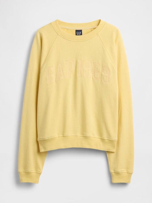 ・フレンチテリー ラグラン GAPロゴスウェットシャツ(¥ 8,990):心地の良いコットン混素材を採用し、国際女性デーの象徴であるミモザカラーもラインナップ。カラーバリエーション豊富な全6カラー。