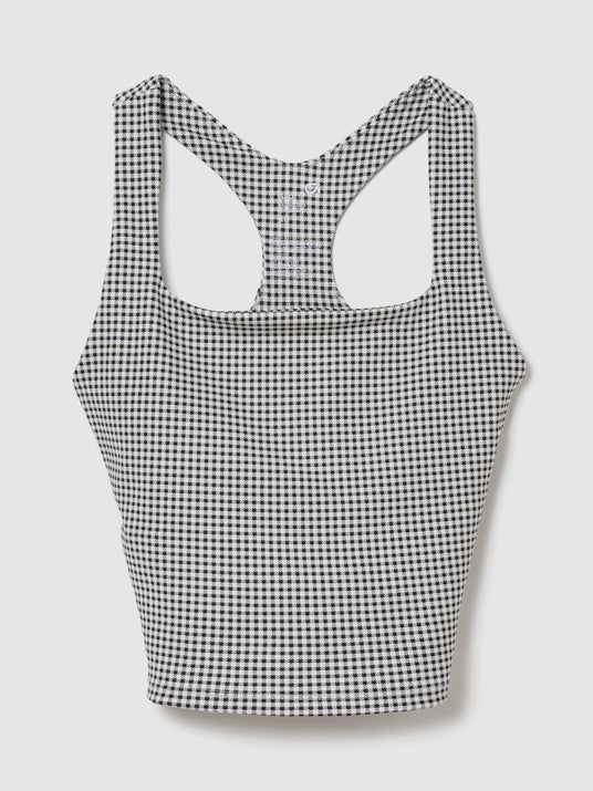 ・GapFitオーバーサイズ ランアラウンドトラックジャケット(¥ 7,990)、GapFit Studio リサイクル スクエアネック ブラキャミ(¥ 4,990):通気性に優れ、日常のワードローブとしても重宝するアイテム。