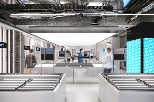 一方、新店舗のコンセプトは「未来のラボラトリー」。Zoffはアイケアとファッションの視点から社会課題に向き合い、アイウェアの可能性を広げ続けています。その進化を店舗でも表現するため、近未来的なデザインを内外装に採用し、アイウェアをカルチャーとして楽しめる空間を創出。また、店舗は自由が丘駅から大学への通学路沿いに位置しており、トレンドに敏感な10~20代の若年層にも響く、先進的な店舗を目指します。