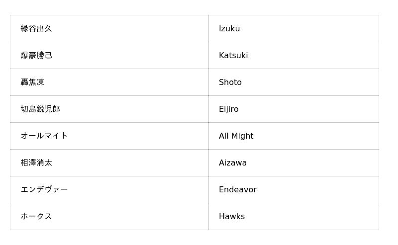 緑谷出久、爆豪勝己、轟焦凍、切島鋭児郎、オールマイト、相澤消太、エンデヴァー、ホークス