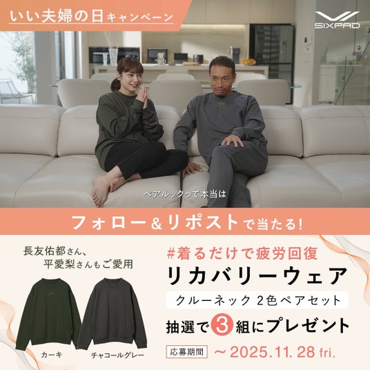 さらに、SNSで参加できるキャンペーンとして、SIXPAD公式Xで「いい夫婦の日 Xリポストキャンペーン」を開催。対象投稿をリポストすると、抽選で3組6名様にリカバリーウェアをプレゼントします。