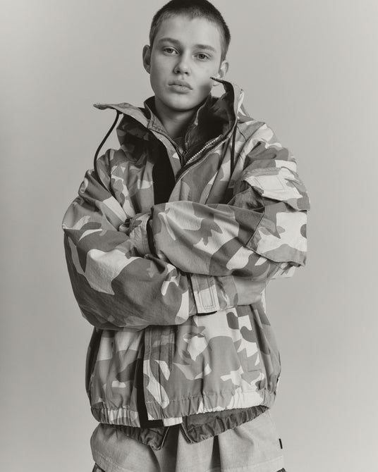 昨シーズンから展開しているリップストップ生地を用いたジャケット・パンツ。カラーはカーキのウッドランドカモ・ブラックの定番カラーに加えピンクカモが新たに登場。ミリタリーの要素を踏襲しながらも、新鮮に映るアイテムに昇華しています。