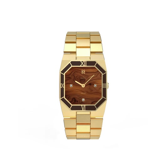 Octagonal Collectionは、ヴィンテージウォッチに見られる八角形ケースの形状をベースにしたコレクションとなっています。ケースにはステンレススチールを使用し、文字盤にはクル・ド・パリ調のパターン加工や、木目・マーブル調のエナメル仕上げを採用しています。