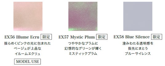 繊細なパールを配合することで、隠ぺい感を感じさせないシアーな発色を実現。