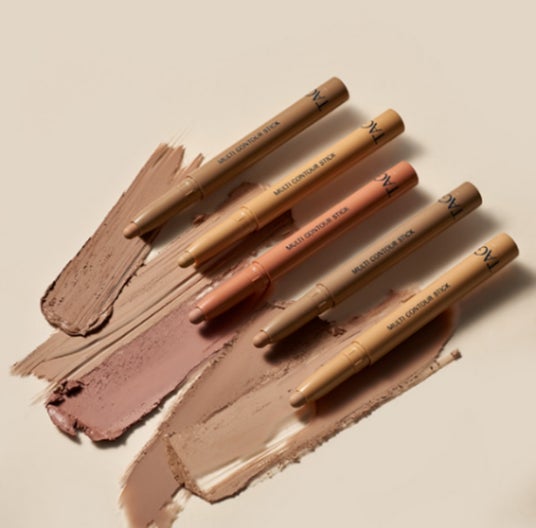 目元、鼻筋、あご等マルチに使えるコントゥアスティック。チークやリップに使いやすいロージィカラーも。