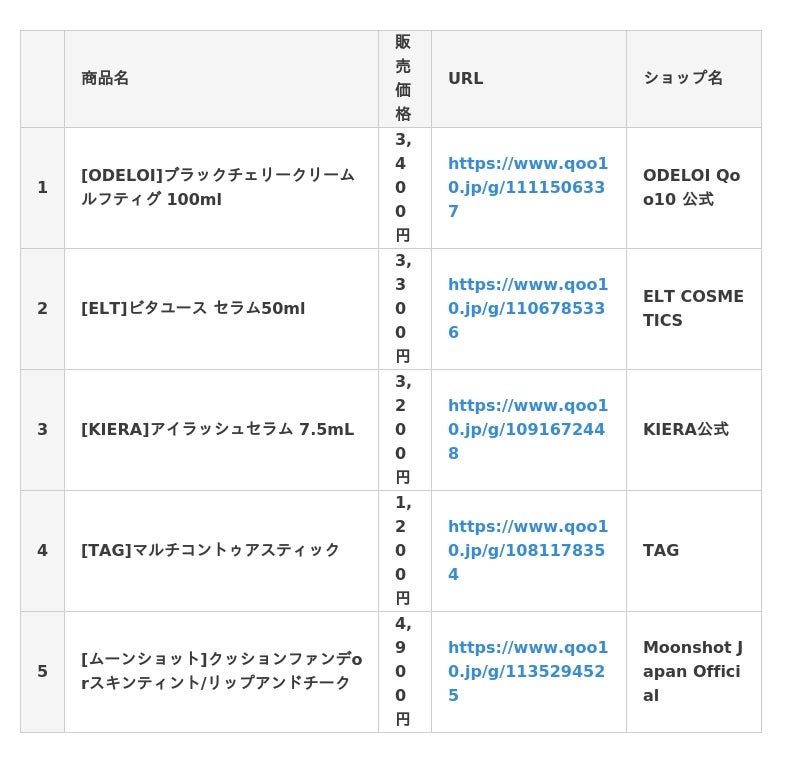 インターネット総合ショッピングモール「Qoo10」を運営するeBay Japan合同会社(本社:東京都港区、代表取締役:グ ジャヒョン)は、2025年5月の「Mega Debut」ブランドの中から、各ブランドが登場した1週間における販売個数にもとづき、5月のデビュー商品TOP5※をご紹介していきます。
