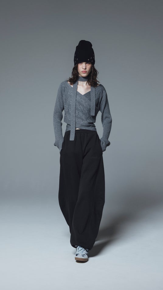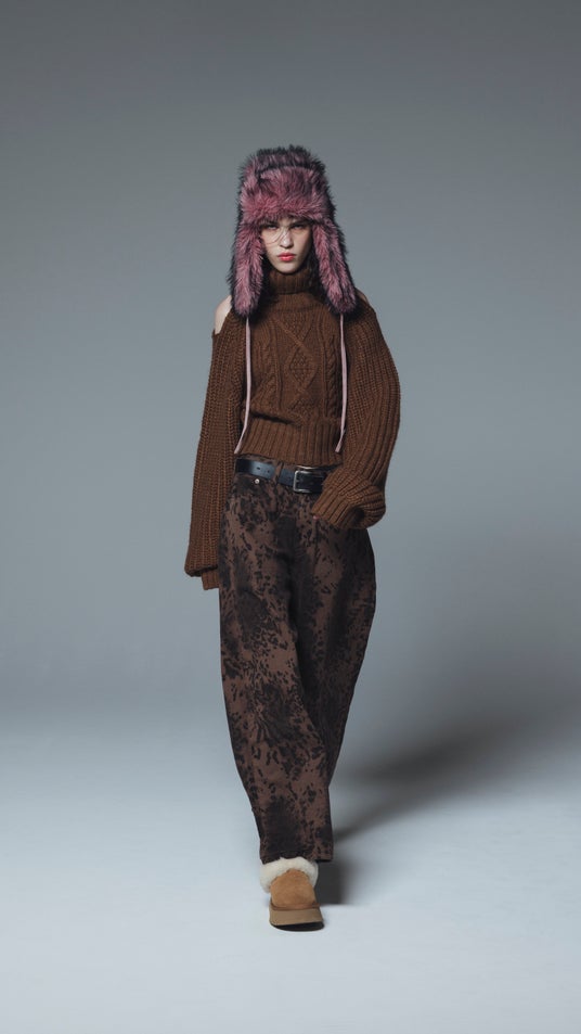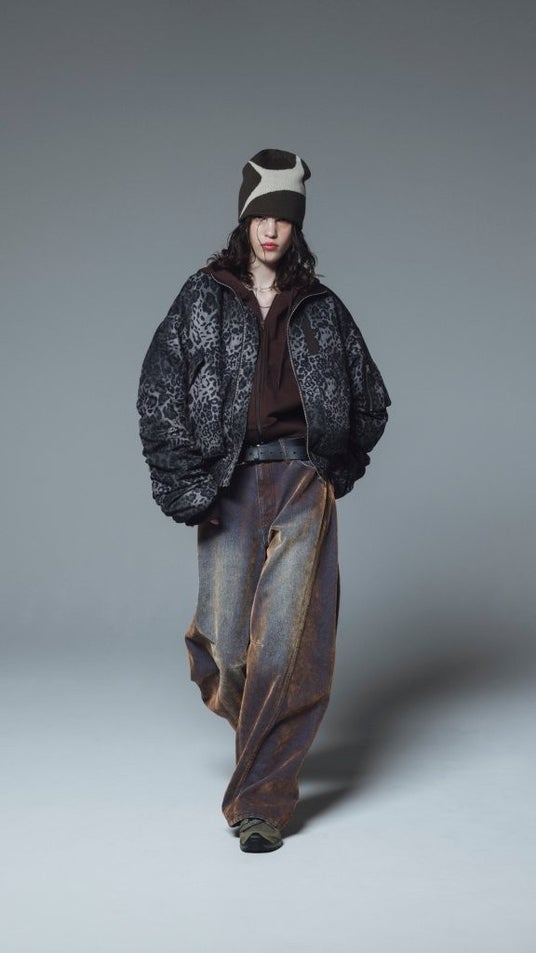 毎シーズン人気アイテムとして注目されているデニムアイテムは、異素材切り替えにより1枚でレイヤードスタイル風に仕上げてくれるデザインや、メンズライクなフーディージャケットとパンツのセットアップ、レイヤードスタイルにも使えるミニスカートを展開。また、フロッキー加工を施し、ミリタリーなムードのセットアップも登場。