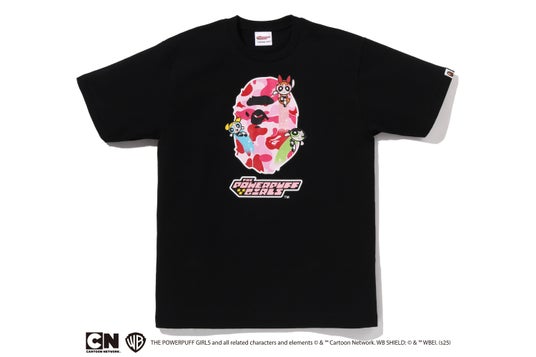 コレクションを象徴するメインモチーフとして、ピンクのABC CAMO柄のAPE HEADにブロッサム、バブルス、バターカップを組み合わせた特別なコラボレートグラフィックを制作。