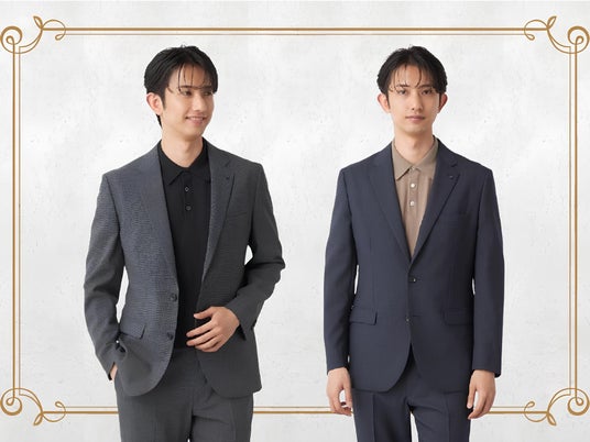 今回発売する「ブリティッシュウール混セットアップ」は、サステナブルな素材を採用しながら、ドライタッチでサラッとした風合いの生地に仕上げることで、汗ばむ季節でも涼しく軽快な着心地を実現しました。上質なブリティッシュウールならではの風合いがビジネスシーンに必要な品格を引き立て、環境への配慮とファッション性を高い次元で両立させた一着となっています。