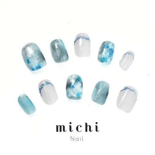 ブルーとホワイトのニュアンスカラーが、紫陽花の花びらを思わせる繊細なアートに。