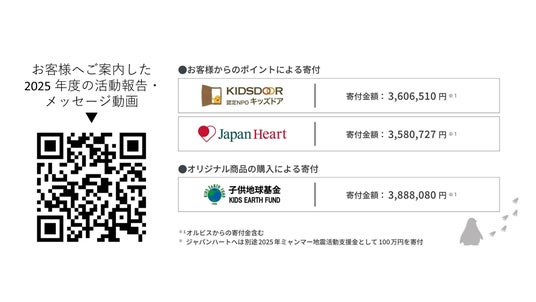 子どもたちが自分では解決できない困難を抱えずに、自分らしく成長していける社会を目指して2024年10月に開始したお客様参加型の寄付プログラムです。お客様が保有するオルビスポイントを寄付いただくことで特定非営利活動法人ジャパンハートおよび特定非営利活動法人キッズドアの活動を支援いただけます。また、特定非営利活動法人子供地球基金とのコラボレーション商品を購入いただくことで、売上の一部が世界中の子どもたちのために役立てられます。