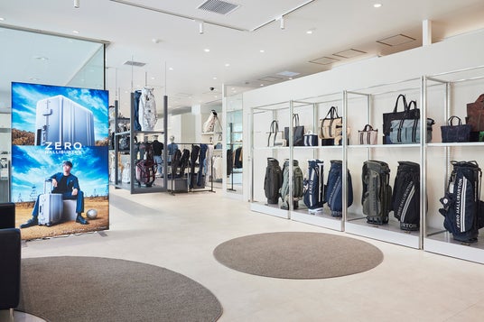2023年11月にオープンした「ゼロハリバートン 新宿サザンテラス店」は、ブランドの象徴であるアタッシェケースやラゲージに加え、ゴルフコレクションまで取り揃えた、ブランド史上最大面積を誇るフラッグシップショップです。ブランドカラーの白を基調に、アイコニックなダブルリブデザインをイメージした意匠を取り入れた、上質で洗練された空間が広がります。