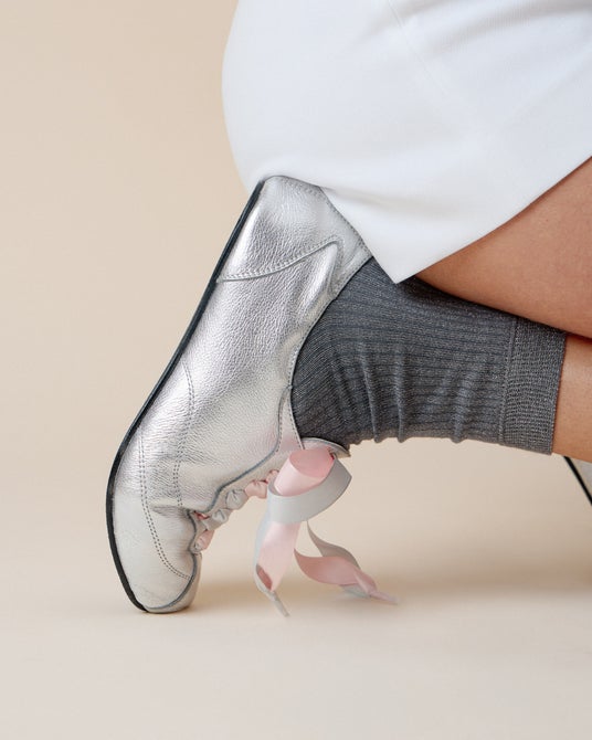 上品でモダンなダブルサテンのシューレースが、バレエシューズのリボンを連想させます。