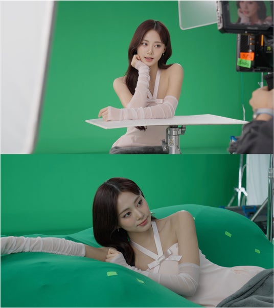 <ツウィさん>透明感のある白い衣装で登場したツウィさんは、リップの上に寝そべる印象的なシーンから撮影がスタート。まるでとろけるような優美なポーズを決め、カメラに向かってふいに“ウインク”をするツウィさん。ウインクとともに放たれた“艶やかな視線”に現場がどよめき、続く「カット」の声とともに見せた、“照れたように目を伏せる姿”とのギャップがまた魅力的でした。まさにリップのとろける質感を体現するような“惹きつけて離さない表情”が印象的なワンシーンでした。