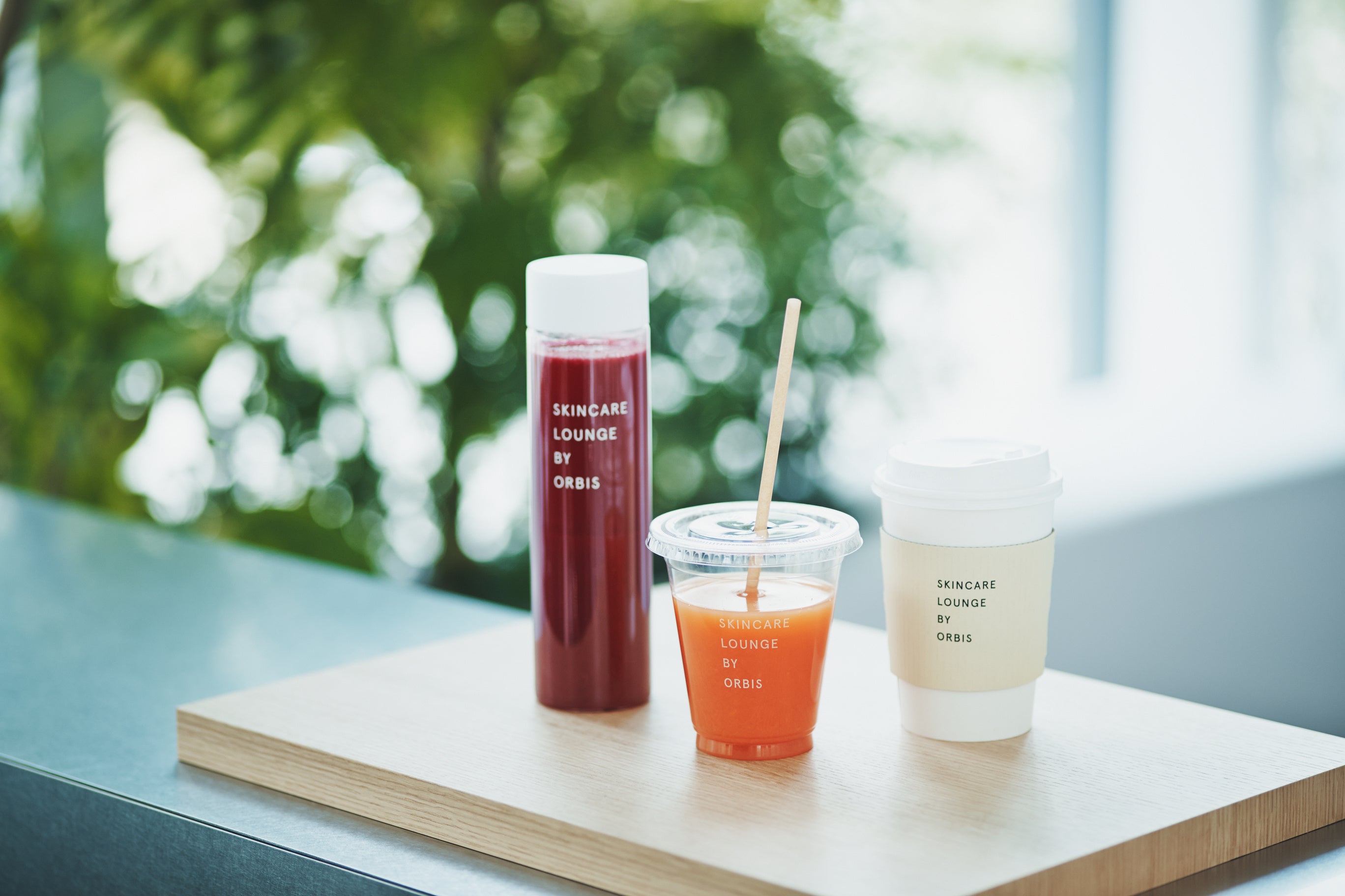 『SKINCARE LOUNGE BY ORBIS』1階にあるJUICE BARで展開する、インナーカラージュースをお一人様1つご提供いたします。その日の状態、生活リズムに合わせて、計5つのラインナップから(RED、ORANGE、GREEN、BLACK、WHITE)お選びいただけます。