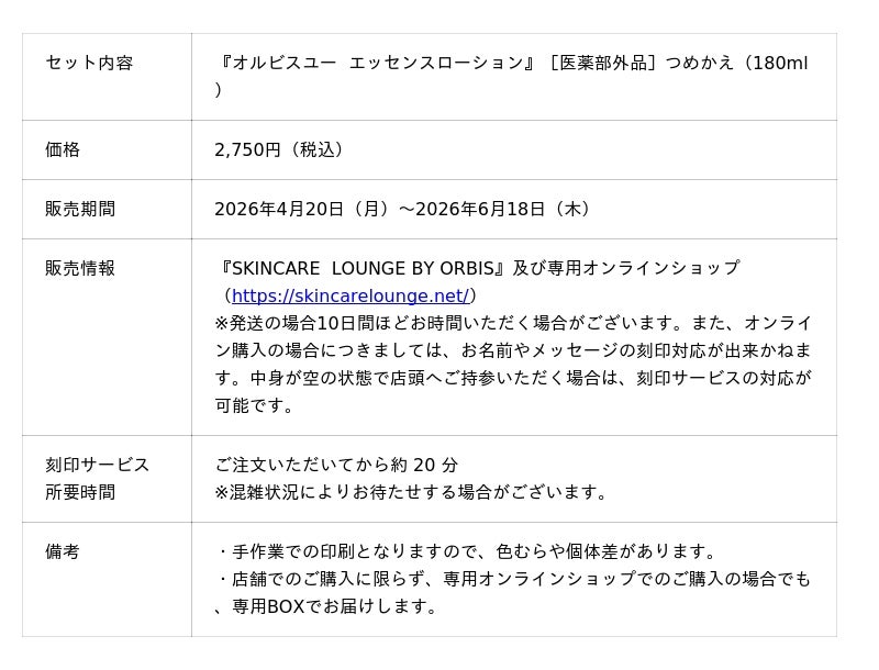 『SKINCARE LOUNGE BY ORBIS』専用オンラインショップでも販売いたしますので、遠方の方はこちらからもお買い求めいただけます。