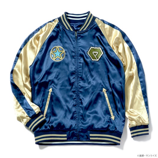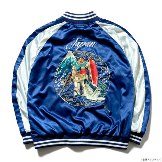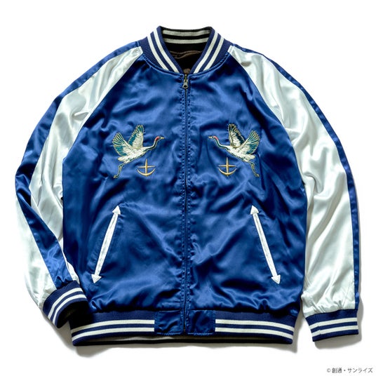 『機動戦士ガンダム』 より、JAPANモチーフのスカジャンが登場!本商品は、光沢がありさらっとしたサテン地に、和柄タッチのダイナミックなイラストを繊細な刺繍で表現したリバーシブル仕様のスカジャンです。ガンダムモデルは、表面ネイビー×ホワイトの配色で、フロント左右に鶴と地球連邦軍のマークを刺繍、背中に鶴と富士山、ガンダムを組み合わせた和柄テイストのデザイン、又、リバーシブルになる裏面はブラック×シルバーの配色で、背中にロッカーテイストのE.F.S.FORCEロゴを刺繍。身頃には両面仕様のダブルジップを使用しており、どちらの面で着用する際にもニュアンスを付けたスタイリングをお楽しみいただけます。