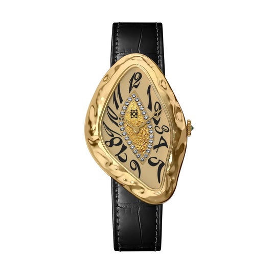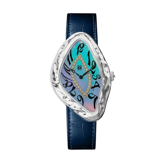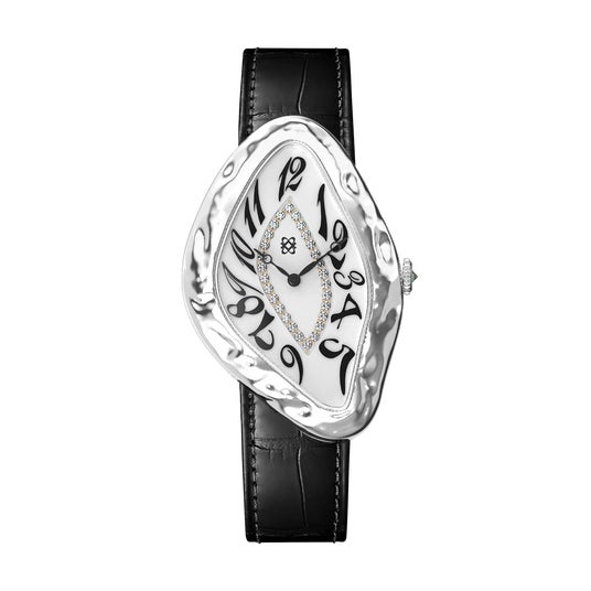 「Paradoxe Diamond Watch」は、流れるような曲線をまとい、液体が時間と空間をゆがめるかのようなフォルムを描いています。柔らかく歪んだラインは、時間の曖昧さや矛盾を表現し、まるでアート作品のような存在感を放ちます。見るたびに異なる表情を見せるこのデザインには、時間の枠を超えた美しさを追求するPASCALの哲学が込められています。