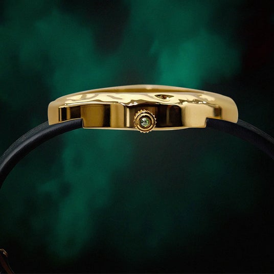 リューズに逆さにセットされた鮮やかなグリーンダイヤモンドは、幸運や再生、無限の可能性の象徴です。個性的なデザインが細部のこだわりを感じさせ、手元に遊び心と華やかさを添えます。PASCALならではの独自性が光るディテールで、身につける人にそっと寄り添います。