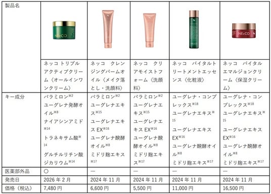 株式会社ユーグレナ(本社:東京都港区、代表取締役社長:出雲充)は、世界初※1となる微細藻類ユーグレナ(以下、ユーグレナ)の希少成分「パラミロン※2」を配合した、1個10役の高機能オールインワンクリーム「NEcCO トリプルアクティブクリーム(医薬部外品)」を、2026年2月2日(月)より対面販売品として発売します。
