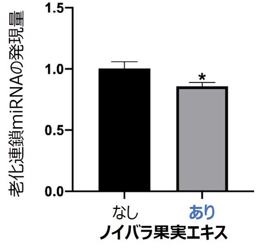 図4 ノイバラ果実エキスの「老化連鎖miRNA」の抑制効果