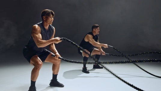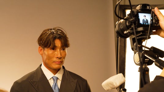 その後は、今回の見どころである“バトルロープ対決”の撮影シーンに移行。撮影現場に設置された二本のロープに対して向かっていくアスリートとしての迫力ある糸井さんの姿に、現場は圧倒されます。撮影が開始し、美しいフォームでロープを躍動させる糸井さん。20秒の長回し撮影に、カットがかかった瞬間「長いわ!」と渾身のツッコミが。撮影した映像を確認し、「OK!・・・今の本物のOKぽかったでしょ(笑)」と話す、お茶目な一面も。計 30分間の“バトルロープ対決”シーンの撮影をやり切り、現場から大きな歓声と拍手に包まれました。