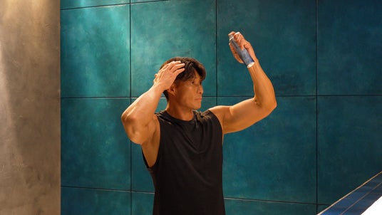厳かな雰囲気の中で、“バトルロープ対決”を行う糸井さん。過酷な対決に対戦相手は苦悶の表情を浮かべ、動きが鈍くなる一方、汗を一切かかず、涼し気な表情でペースを上げていきます。その秘密を探るべく、時間を戻してプレイバックしてみると、対決前に「オイルコントロールクールスプレー」を仕込んでいたことが判明。