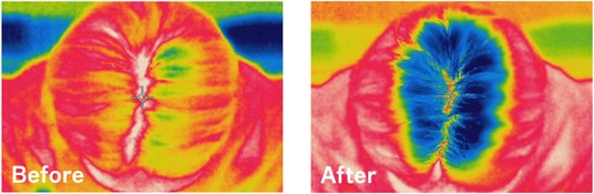 夏を想定した30℃/60%加湿の環境下で、頭皮に塗布した状態をサーモグラフィーカメラで測定したデータ