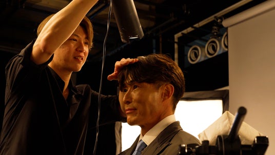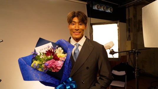 最後のスチール撮影では、本物の氷を頭に乗せて撮影。人生初の“氷乗せ”に糸井さんも興味津々の様子。「冷たいな(笑)」とポツリ呟きながらも撮影が続き、全ての撮影が終了。クランクアップ後にはスタッフからサプライズで花束が贈られ、温かな拍手の中で撮影は締めくくられました。
