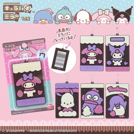 株式会社バンダイ ライフスタイル事業部では、バンダイが運営する化粧品ブランド「CreerBeaute(クレアボーテ)」より、『サンリオキャラクターズ キャラパキチョコレート』をそっくりそのままミラーにした『サンリオキャラクターズ キャラパキミラーVol.2』全5種・各1,320円(税込)を2025年6月下旬より全国のコンビニエンスストアやドン・キホーテ、ドラッグストア、バラエティ・キャラクター雑貨専門店などで順次販売開始いたします。(発売元:株式会社バンダイ クレアボーテ)