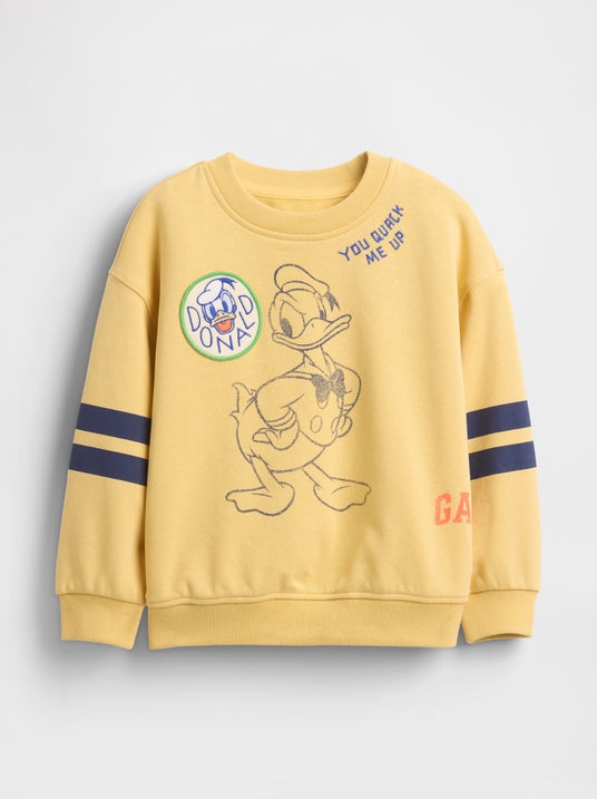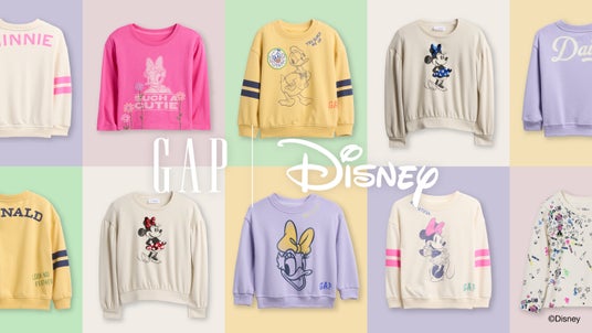 今回のGap×Disneyコレクションは、ガールズからはミニーマウスのスウェットシャツがラインナップ。ミニーマウスのリボンとスカート部分にスパンコールが施され、上下に撫でるだけで赤から青へとカラーが変化し、見る角度や動きによって表情を変えるスパンコールがいつものコーディネートに華やかなアクセントをプラスします。トドラーガールズでは肌に優しいコットン素材でデイジーが描かれたロングスリーブ グラフィックTシャツ、ミニーマウスやデイジーと並んでGapロゴがデザインされたヴィンテージライクなスウェットシャツに注目。トドラーボーイズから展開するドナルドのカレッジ風スウェットシャツは、ドナルドのワッペンとイエローのカラーが特徴的で、バックに「DONALDO」、「Crack me up」の発音をアヒルの鳴き声に真似た「YOU QUACK ME UP」などのグラフィックも遊び心あるデザインとなっています。