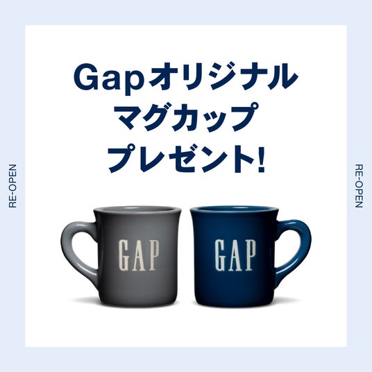 今回のリオープンを記念して、先着100名様限定で税込み10,000円以上ご購入されたお客様にGapオリジナルマグカップをプレゼント。また、お子さま連れのお客様にもお楽しみいただけるようGapのアイコンキャラクター、ブラナンベアと一緒に写真が撮れるフォトイベントを開催。ご来店されたお客様にはブナランデザインの風船もプレゼントいたします。
