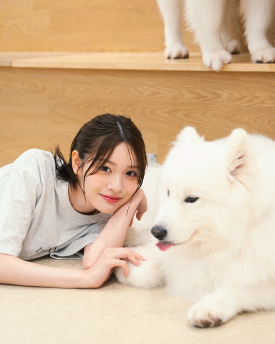 LOOKにはモデルの中川紅葉が登場。FREAK MAGにて実際にサモエドカフェmoffuを体験いただきました。