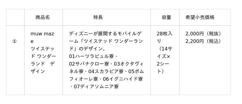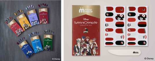 初回に販売するネイルシールは、ディズニーが展開するモバイルゲーム「ツイステッド ワンダーランド」のデザインと、アイドルグループなどの個々のメンバーのイメージを表現する「メンバーカラー(通称:メンカラ)」を楽しめる「muw maze」オリジナルデザインです。